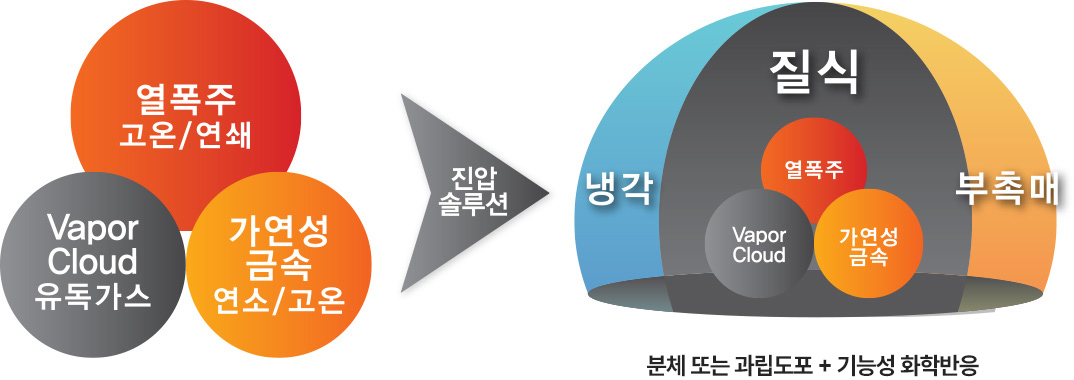 산소 차단에 의한 화재 진압 및 유독가스와 연기의 확산을 차단하는 단순하고 효과적인 솔루션.